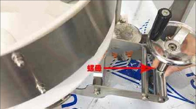 3、最后把物料放在萬(wàn)能杯調(diào)節(jié)好后,就把量杯計(jì)量裝置上的螺母上緊。